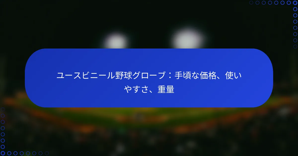 ユースビニール野球グローブを購入する際の重要な考慮事項には、サイズ、フィット感、耐久性、使いやすさが含まれます。適切なグローブを選択することで快適さとパフォーマンスが向上し、メンテナンスやコスト効果を理解することで、情報に基づいた決定が可能になります。